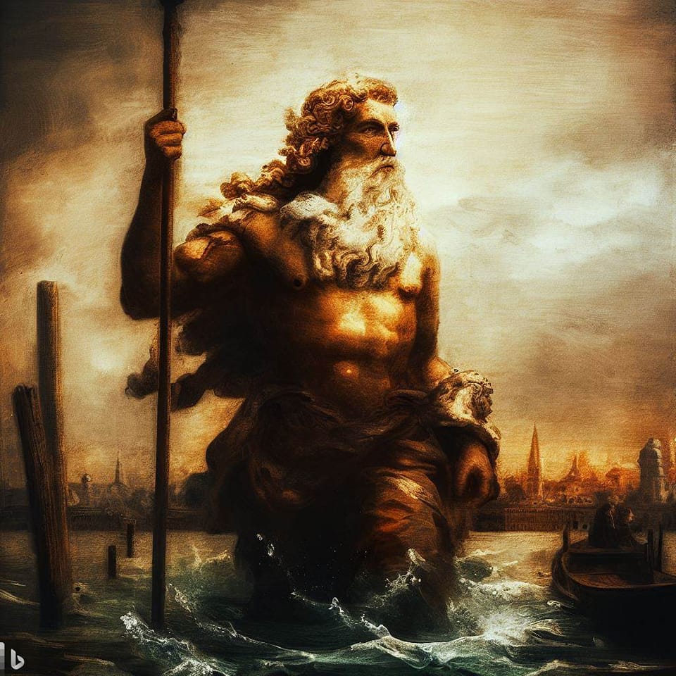Poseidon in the Lagoon, Phil Hall / Bing We need a Deliberate Act of Civilizational Triage by Phil Hall “We are glad to make special inquiry about you, whom the nature of your dwelling-place and the fertility of your soil commend. For you live like sea-birds, with your homes dispersed,…